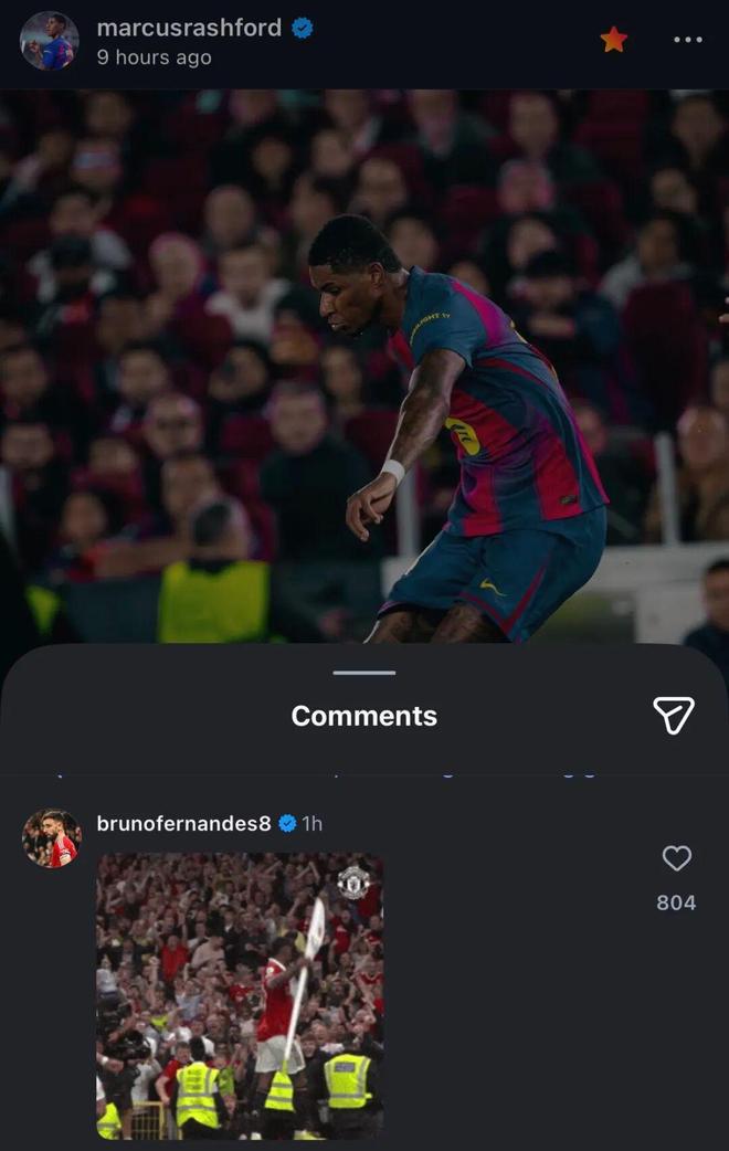拉什福德欧冠赛场送助攻,B费与其互动